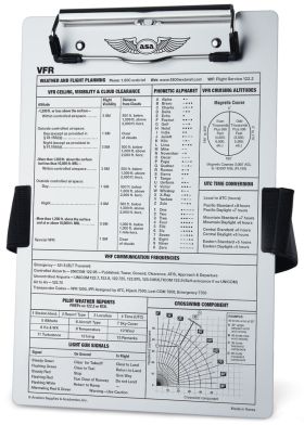 Includes leg strap with pencil holder, strong metal clip, and useful VFR information tooled onto the attractive, brushed aluminum board.