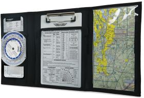 The Long Tri-Fold Kneeboard includes a brushed aluminum board and a 3-panel jacket with plenty of room for charts, notes, flight computer, pencil, pen and more (E6B sold separately, chart not included).